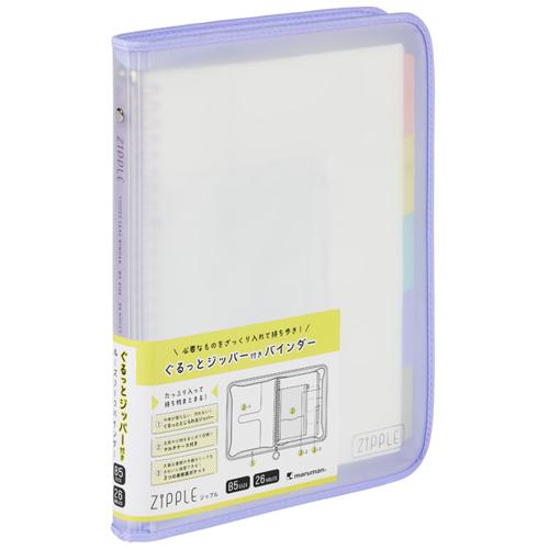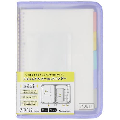 たっぷり入って、持ち物まとまる、ジッパー付きのバインダーが新登場! 通学バッグの整理や、教室移動時など、ちょっとした荷物の持ち出しを快適にするバインダーです。 表紙ポケットにお気に入りのグラフィックを入れたり、ジッパーの引手にチャームを付ければ 自分らしく楽しく使える1冊に! ●POINT①:中身が落ちない、汚れない!ぐるっととじられるジッパー付き ・教室移動の際など、急いでいてもジッパーをとじていれば中身を落とさず安心。 ルーズリーフやプリントも、とりあえず 投げ込んでおけるため、あとからゆっくり整理することができて便利。 ・ジッパーには指をかけられて引っ張りやすい円形の引手を採用。 お気に入りのチャームなどを付けることも可能です。 ●POINT②:文具や小物をまとめて収納!マルチケース付き ・筆記具など文具が収納できるファスナー付のマルチケースが1個ついてくる! ・外側にはふせんやUSBなどをきれいに保管できる、小さなポケットも。 ・リップや目薬など、身の回り品も入れても◎ ●POINT③:大事な書類や予備のリーフもきれいに保管できる!3つの表紙裏ポケット 表2…サイドインポケット。お気に入りのグラフィックを入れて、カスタマイズしても◎。 表3…プリントなどの仕分けもできる大小2枚のポケット。【検索ハッシュタグ】#マルマン#バインダー#ファスナー付きバインダー#ジップル#勉強ツール#ポーチ#バッグインバッグ#ZIPPLE#maruman