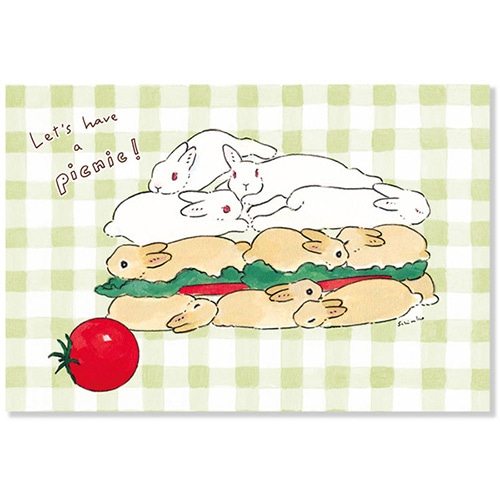 可愛いうさぎたちと森山標子ならではの世界観がぎゅっと詰まっています。素敵な英語のメッセージ入りの柄は大切な人への贈り物にもぴったりです。