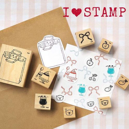 いろんなモチーフをいろんな絵柄でスタンプにした、木製ラバースタンプのシリーズです。パンダが乗ったソーダ柄