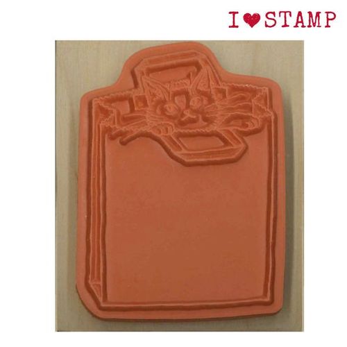 いろんなモチーフをいろんな絵柄でスタンプにした、木製ラバースタンプのシリーズです。紙袋に入ったネコ柄
