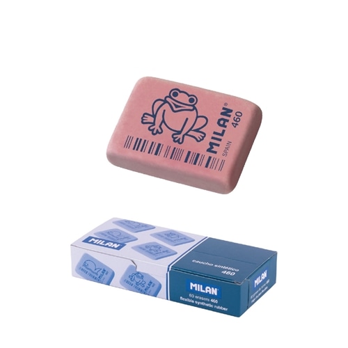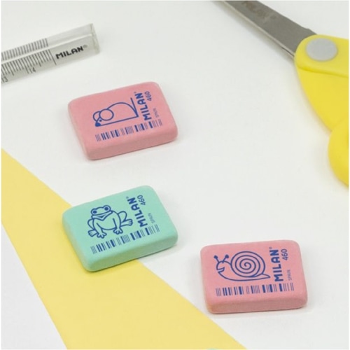 スペインの文具メーカーMILAN(ミラン)の消しゴムです。愛らしい動物たちのイラストが魅力の「460」消しゴムは、MILANのロングセラーアイテムのひとつ。小さめのサイズ感も可愛らしいです。ゴムのカラーは3色、イラストは6種類です。【入数】1箱60点入り。箱単位でご注文いただけます(1ロット=1箱)。3色6柄アソート。【商品仕様】[本体サイズ]H23×W31×D7mm【注意】海外メーカー商品のためパッケージのデザインが予告なく変更になる場合がございます。【MILANについて】1918年創業のスペインの老舗文具メーカー「MILAN(ミラン)」は、消しゴムの生産から事業を始め、現在では文具や雑貨の世界的メーカーとして国際的な地位を確立しています。デザイン性の高いミランの商品は時代を超えて世界中のファンから愛されています。